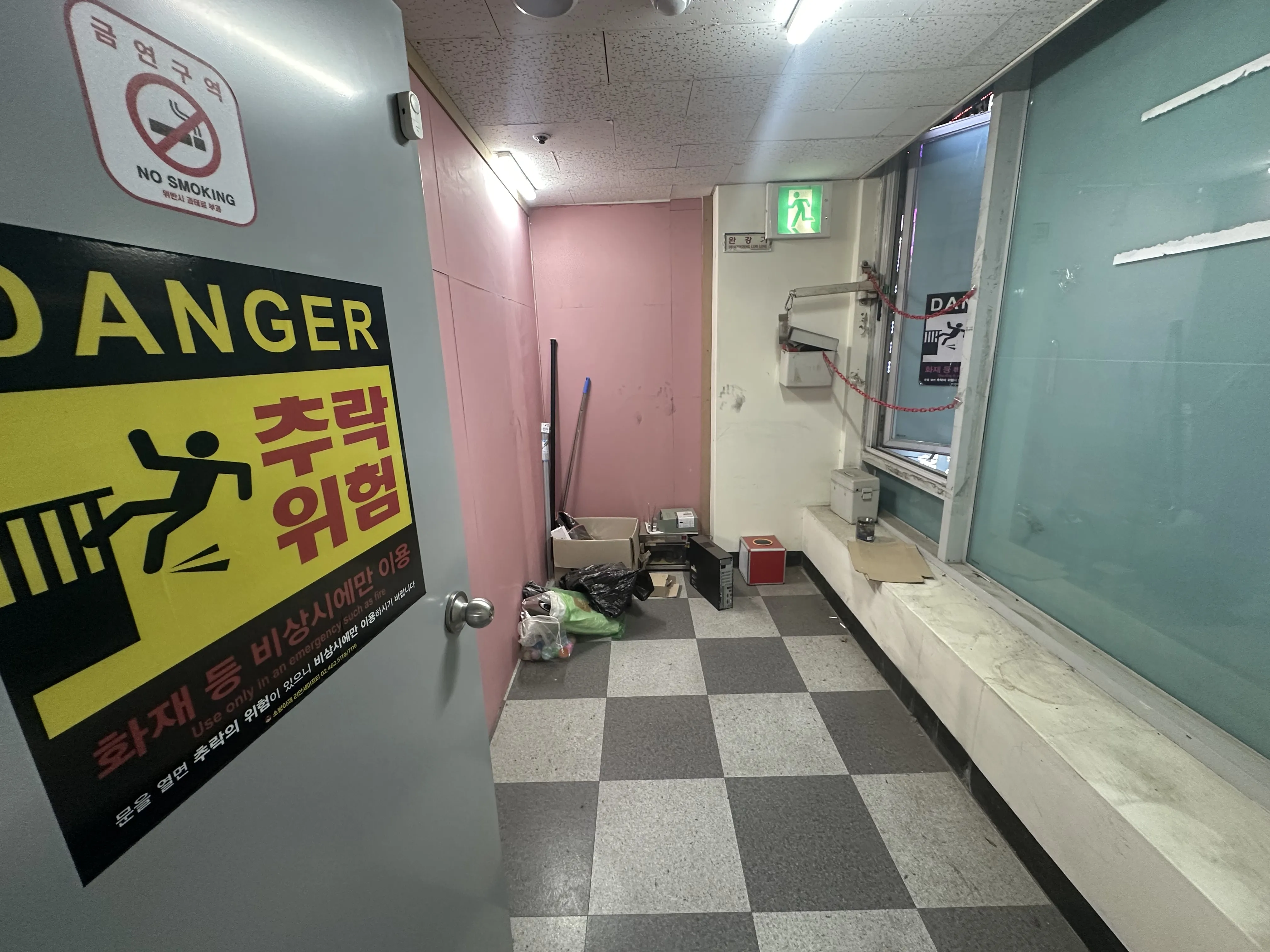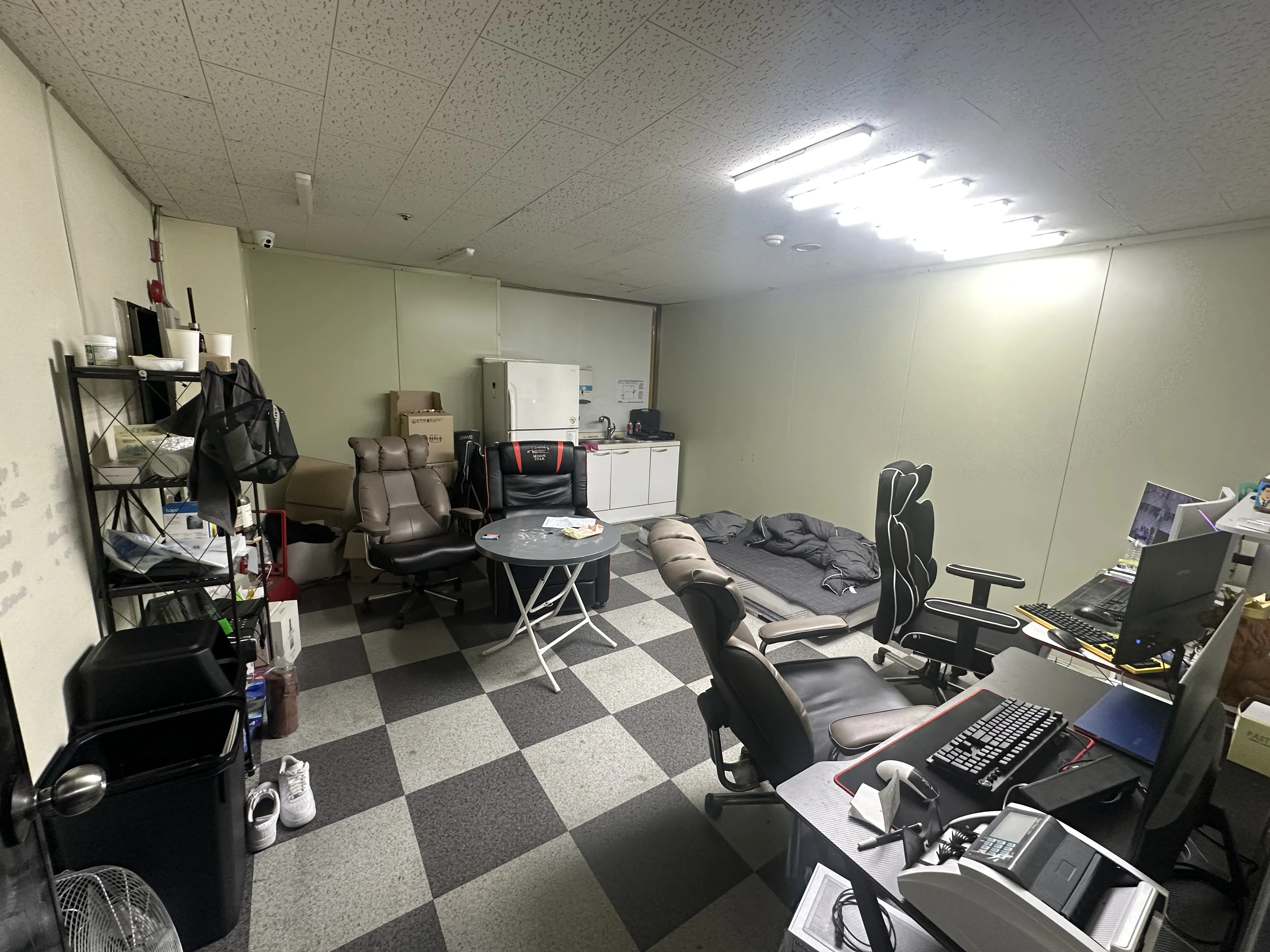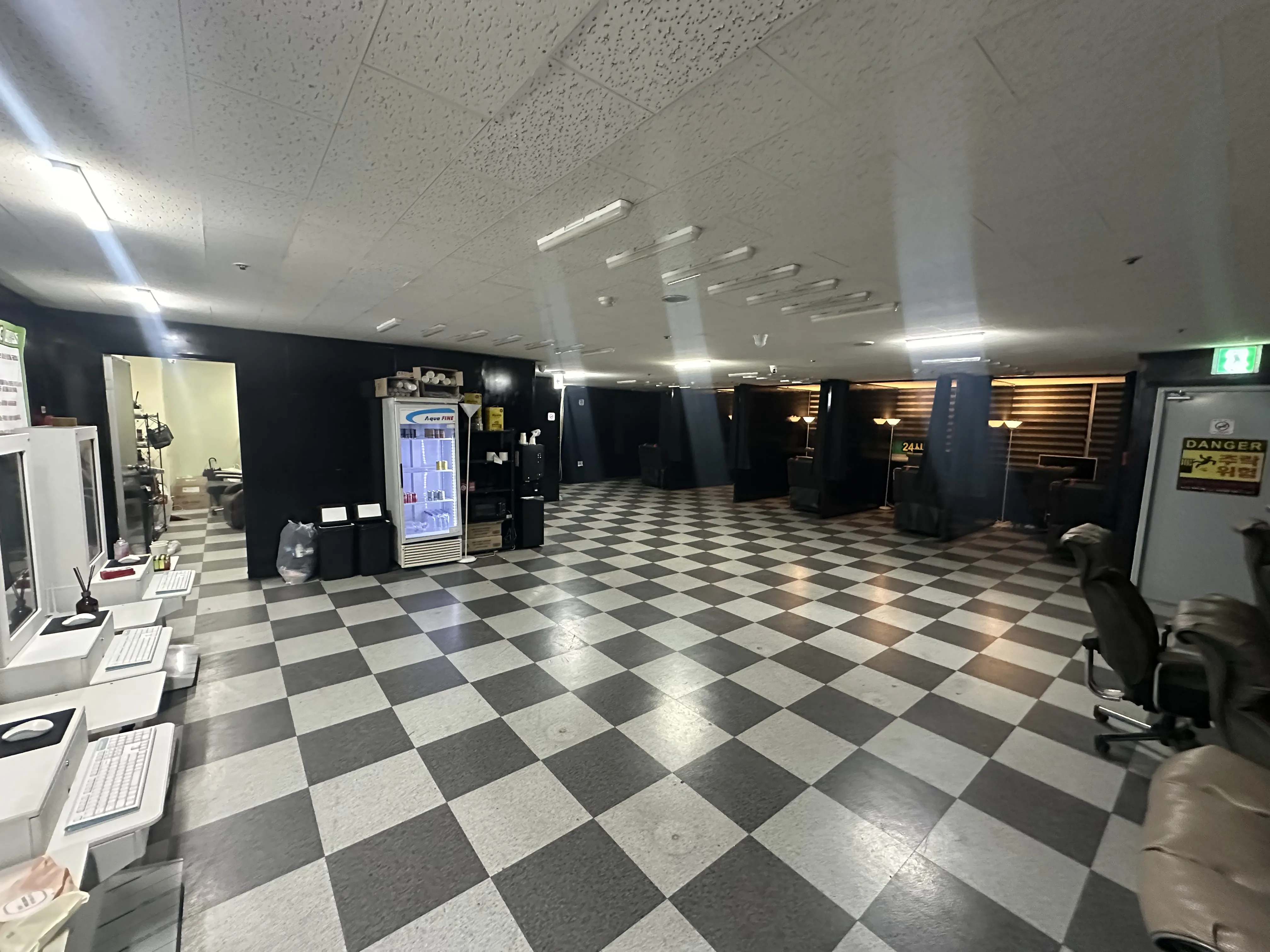 메인 출입구 가벽으로 2중 출입문이고 2층 소방시설,카운터는 가벽으로 따로 분리된공간이 있습니다.