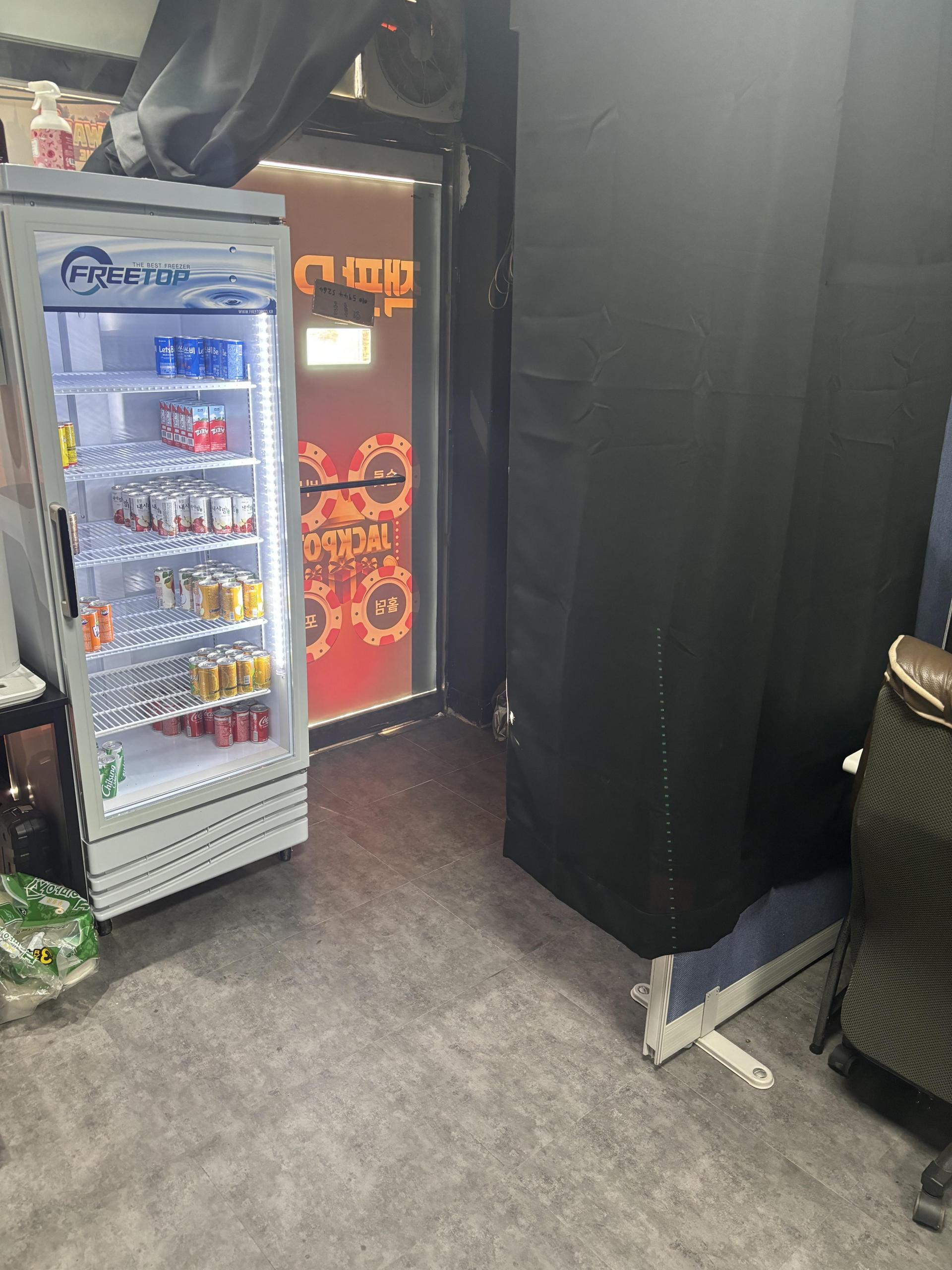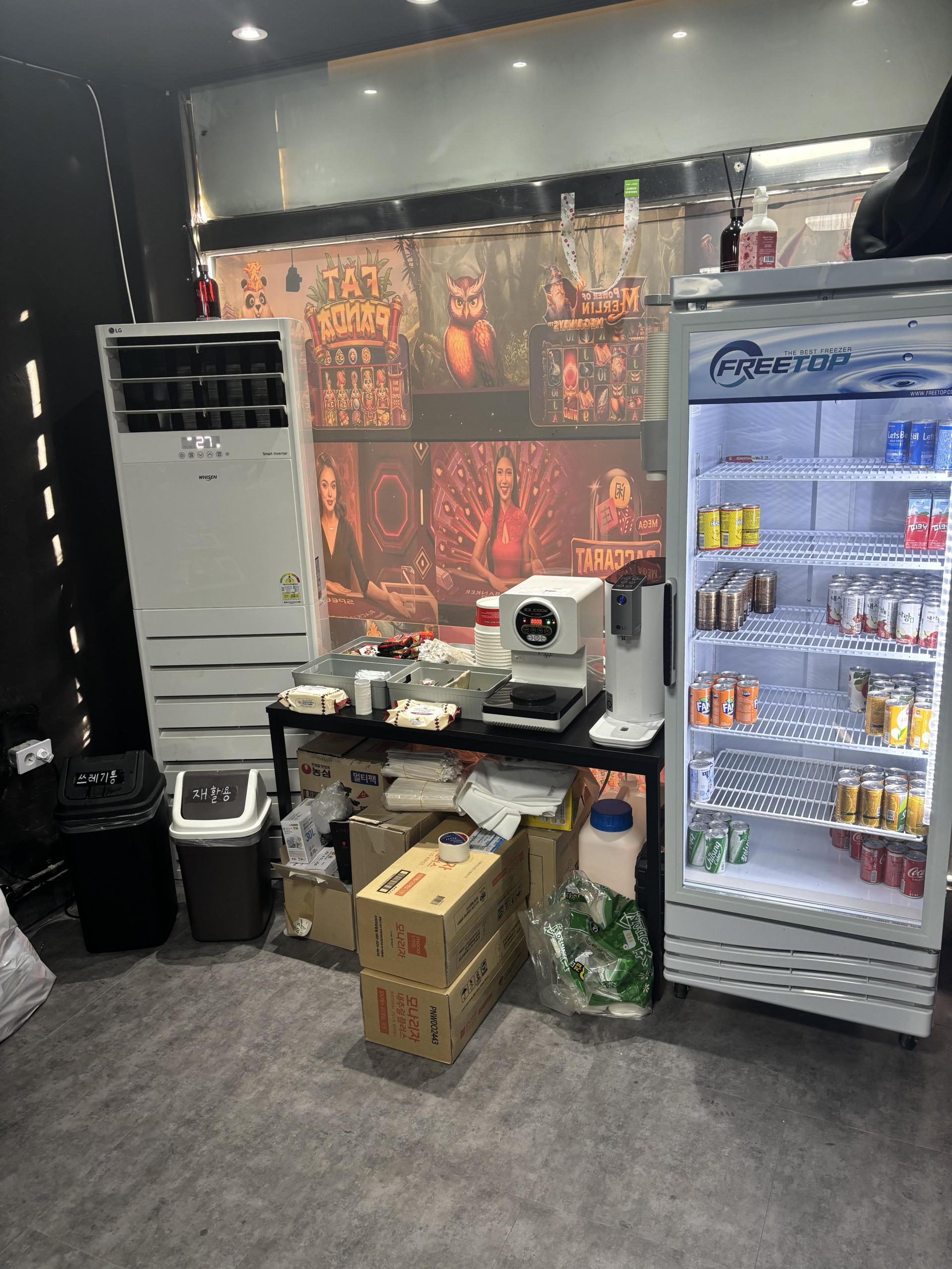 8. 시설집기 : 손님자리 셋트50만원짜리6대 카운터1대 냉난방기.냉풍기.냉장고새거.라면기기.청소기.1인침대